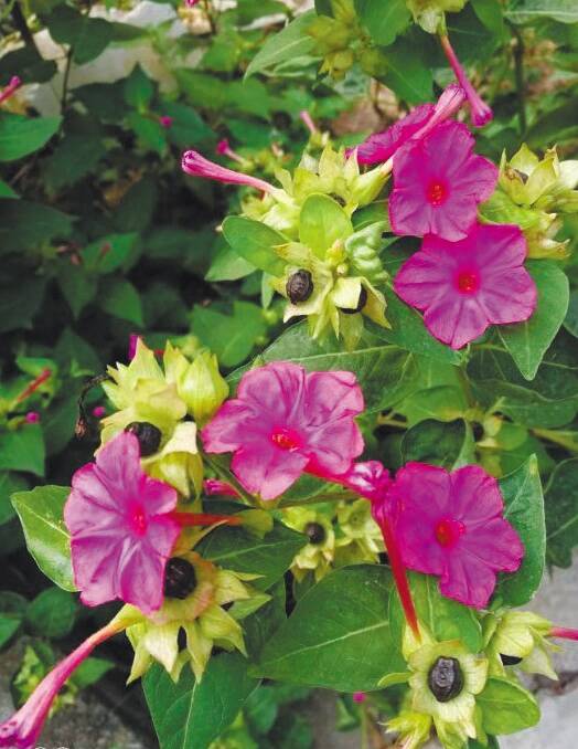 此株亦名夜饭花,是紫茉莉科紫茉莉属,多年生草本,通常高约数十厘米。地下块根形如小番薯,含有毒性。
