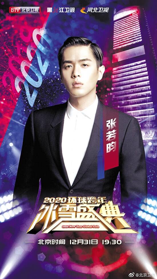 北京卫视跨年晚会名为“2020BTV环球跨年冰雪盛典”,将于12月31日19:30举行,主题是“天涯共此时”,依然与黑龙江、河北两大卫视合作,同步播出。