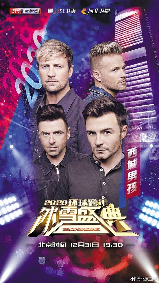值得一提的是,爱尔兰组合西城男孩也将加盟北京卫视跨年晚会。西城男孩是本世纪初红遍全球的男子乐队之一,2011年组合宣布解散,2018年宣布重组,并在今年11月推出最新专辑《Spectrum》,还将于明年1月公布全新巡演计划。