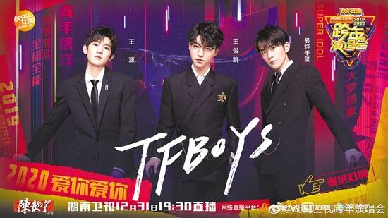 湖南卫视跨年晚会将于12月31日在海口举行。阵容方面,既有郭富城、林俊杰、韩红、杨宗纬、张碧晨、刘宇宁等大牌歌手,也有刘涛、马天宇、秦海璐、杨幂、杨紫、张翰等知名演员,更有一波顶级流量明星:TFBOYS(王俊凯、王源、易烊千玺)、吴亦凡、华晨宇、黄子韬、王嘉尔、王一博、王晨艺、火箭少女101、R1SE、UNINE、时代少年团……看湖南卫视的跨年晚会,粉丝只用做一件事——数星星。
