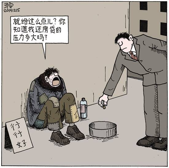 就给这么点儿?你知道我还房贷的压力多大吗?(幽默画)□王原