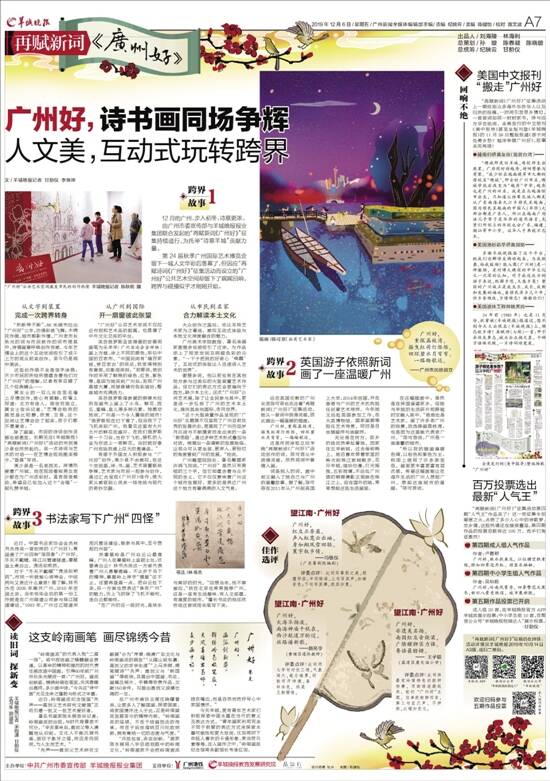 一首首词如同一封封家书,诗与远方尽在纸间。全美发行的中文报刊《美中报导》甚至全版刊登《羊城晚报》的11月26日整版报道。《美中报导》社长江维表示,希望借此机会,加强活动在海外的宣传力度。“参与这个活动,不但能让海外华侨华人抒发对家乡的感情,讲好广州故事,还能让他们的后代了解家乡。虽然我们远离故土,但对家乡的爱意丝毫不减。”