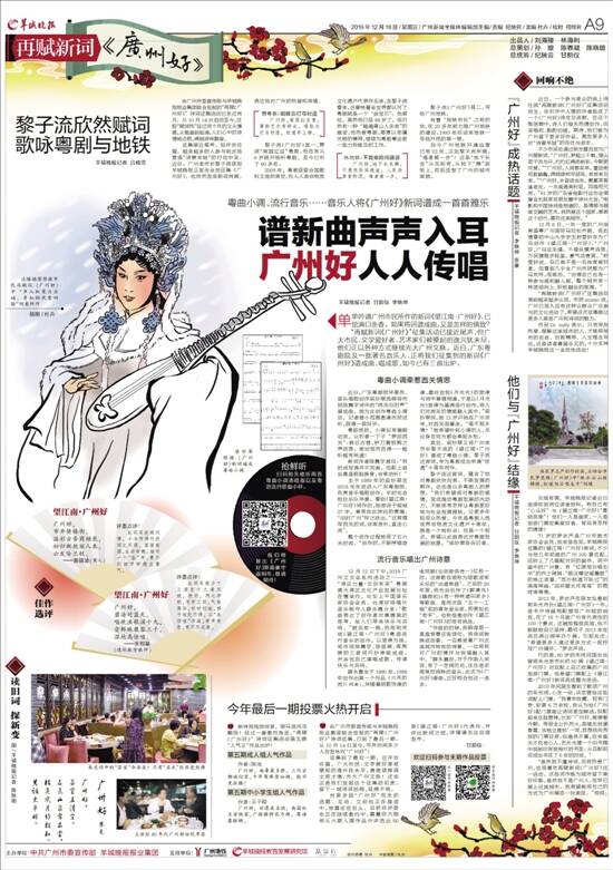 12月18日,广东粤剧院及一批著名音乐人,还将征集到的《广州好》新词谱成粤曲、唱成流行歌。广东粤剧院伴奏员、音乐唱腔创作人梁妙翠创作出粤曲小调,“希望听到粤语小调的人,无论身在何方都会牵起乡愁。”