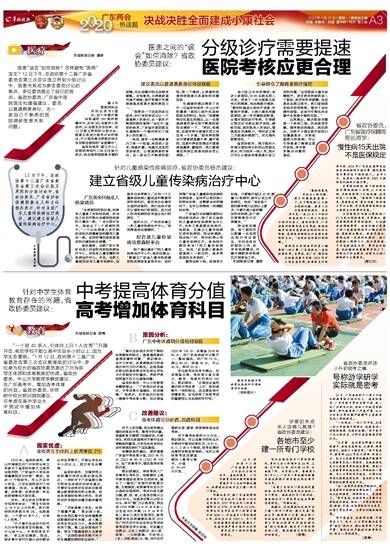 李静波委员建议,逐步提高广东省中考体育分值,2021年70分,2022年80分,2023年100分。在广东高考中,增加选考体育的内容。