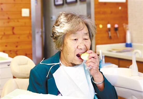 戴好牙还没下牙椅就吃起了苹果
