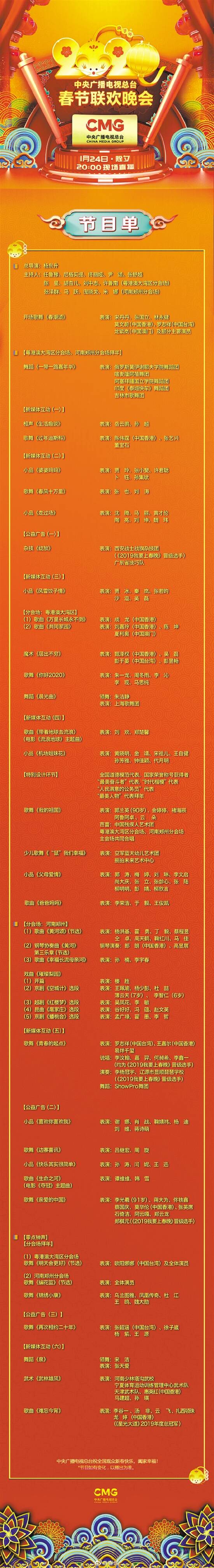 最终节目单及播放顺序以除夕当晚播出为准