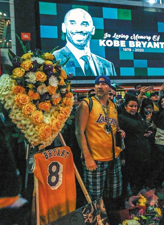 球迷在洛杉矶湖人队主场斯台普斯中心外举行悼念活动 新华社发