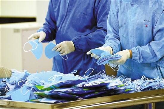 工人正全力生产市场急需的口罩 羊城晚报记者 邓勃 摄