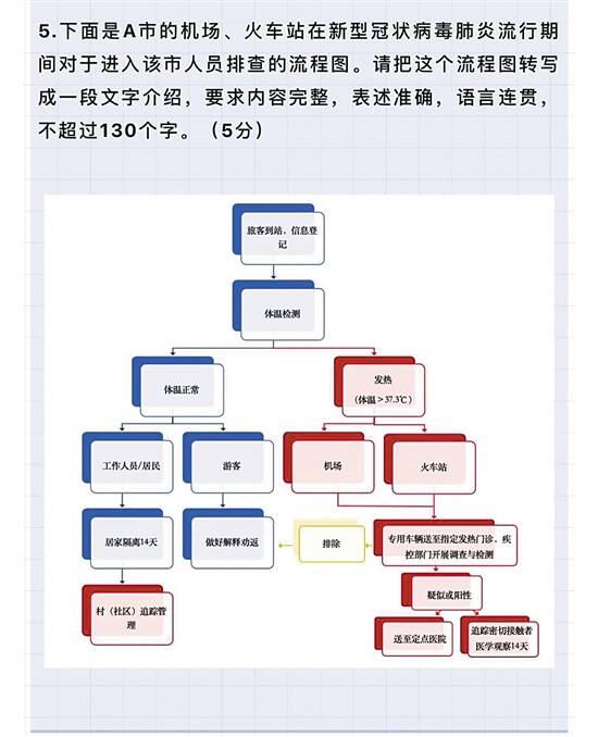 语言运用题。三个大题均可选择与新冠肺炎疫情相关的材料来命题。如语段综合、语段缩写与扩写、填写句子、语言表达得体、图文转换等。