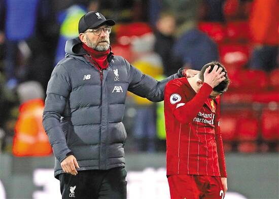 利物浦输球爆出惊天大冷门,其实有先兆。前一轮利物浦面对诺维奇,直到第78分钟才由马内完成绝杀,以1比0险胜;上轮对阵西汉姆比分一度落后,也是靠马内在第81分钟绝杀,才以3比2险胜;此前在欧冠赛场,利物浦做客以0比1不敌马竞。可见,在英超、足总杯、联赛杯、欧冠和世俱杯五线作战的利物浦,在本赛季的赛程接近2/3之时终于累倒。