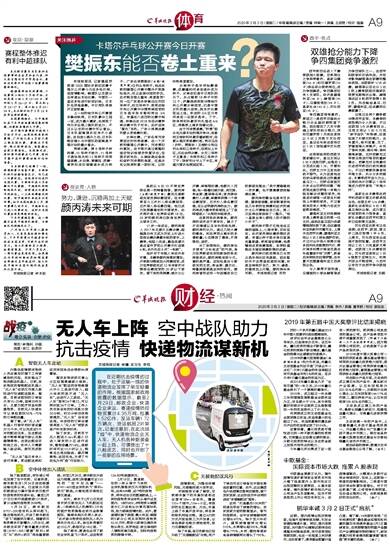 在近期抗击疫情的过程中,处于运输一线的快递物流业发挥了举足轻重的作用。根据国家邮政局披露的数据显示,截至2月29日,邮政企业、快递企业承运、寄递疫情防控物资累计4.35万吨、包裹1.52亿件,发运车辆1.72万辆次,货运航班291架次。记者注意到,在此次战“疫”中,快递物流企业无人车、无人机各种新装备一起上阵,可谓使出了十八般武艺,同时也开创了一些新的应用场景。