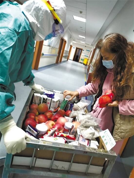 “昨天吴锡平医生查房的时候,我就提到说特别想吃苹果,没想到今天就有了。”31床王阿姨拿着苹果笑道。据了解,特殊时期,为了尽可能减少家属感染率,汉口医院病房实施无陪护政策,患者一日三餐由医院统一配送。珠江医院“爱心小推车”送来的水果牛奶小食物,为这些隔离患者送上了三餐之外的抚慰。