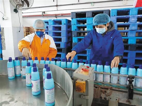 面对疫情,日化企业都在以高度的社会责任感,充分发挥主业优势,助力疫情防控。羊城晚报记者近日调查发现,目前日化企业正在抓紧复工复产,以确保消毒杀菌、清洁防护物资的生产及供应。自2月2日起,蓝月亮实现24小时连续生产,倾力保障消毒杀菌清洁防护产线的全面复工。截至3月5日,蓝月亮消毒杀菌清洁防护用品日产能已超过400吨,产量超过2000万支,已达去年同期的3倍以上。