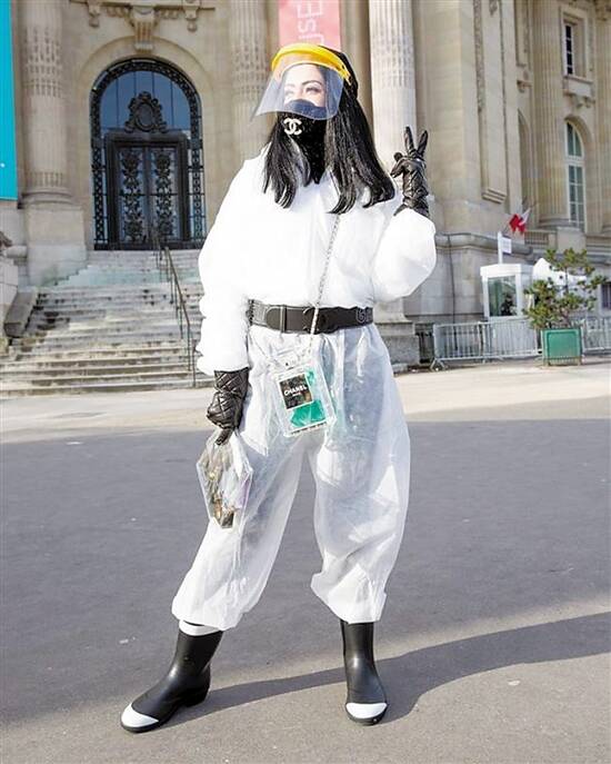 33岁的以色列女星妮可·雷德曼贡献出法国时装周上最“硬核”的防护装扮。她戴着防护面罩和装饰有香奈儿logo的黑色口罩,一身白色防护装,双手戴着手套,脚蹬黑白防水鞋,安全时尚两不误。