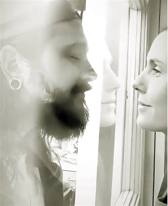 自我隔离中的超模海蒂与丈夫隔窗亲吻