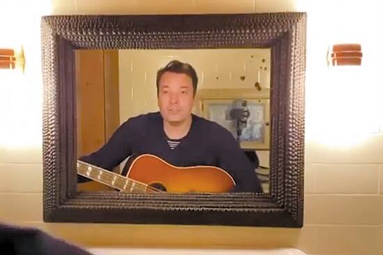 《吉米今夜秀》主持人吉米·法伦也为女儿们录制了一首“洗手歌”。视频中,45岁的他在盥洗室里抱着吉他对着镜子唱道:“好好洗手,好好洗手,不要碰触你的脸,这样就会让世界更美好。”他的两个女儿——6岁的温妮和5岁的弗朗西斯,则排排站着洗手,回头对镜头露出微笑。