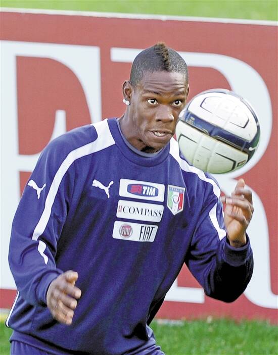 作为那届欧洲杯的正式持证记者,本人在决赛前的踩场训练和赛后两次近距离接触过巴洛特利,只有近距离才能感受到这名意大利前锋金刚下凡一般的完美身材,身高1米89、体重88公斤,高大、强壮,力量、速度都非常出色,堪称罕见。如果仅论身体条件,马拉多纳与巴洛特利相比,不过是歪瓜裂枣,C罗也稍逊一筹。可是巴洛特利在足球领域所达到的高度,与马拉多纳和C罗相比差得很远,原因是他经常“思考人生”。