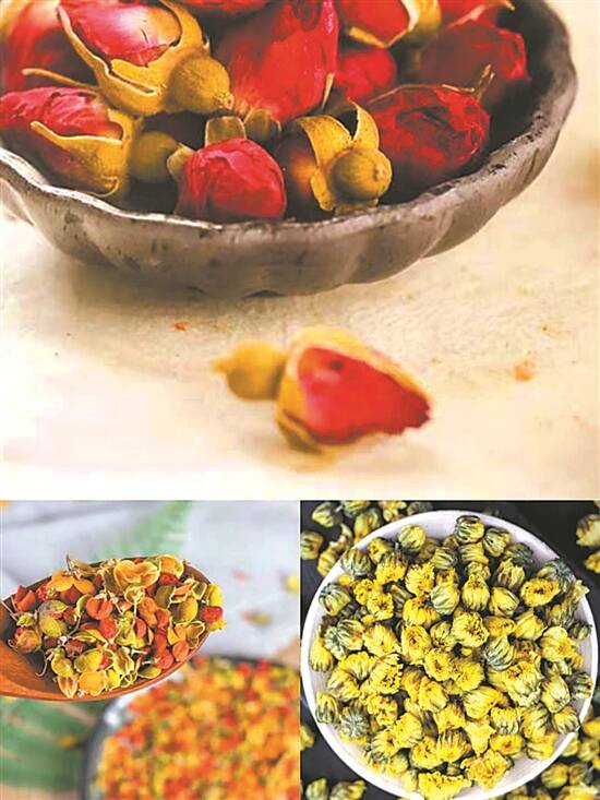 配方2:玫瑰花5g、合欢花5g、菊花2g,泡茶饮。