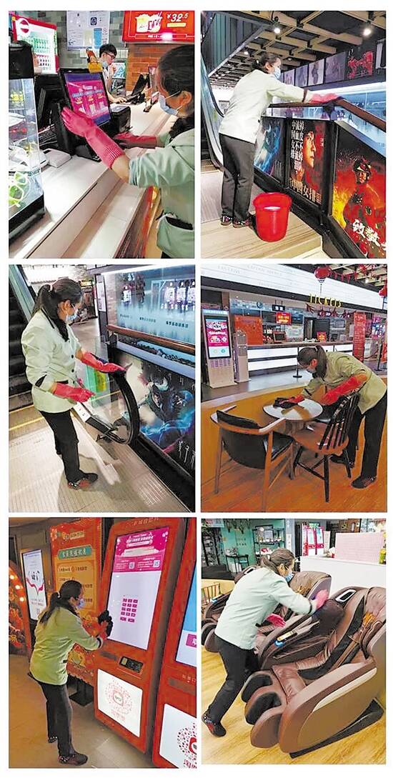 复业期间每个清洁消毒流程责任到人,操作员必须制表登记操作时间和签字,值班经理落实操作规范和清洁质量,门店店长全面安排防疫工作,影院的防控措施接受主管部门、院线以及观众的监督和指导。