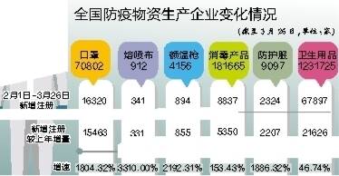 新冠肺炎疫情在全球蔓延,疫情之下,防疫物资生产更受市场关注。来自天眼查的数据显示,“中国制造”的防疫物资产品走进全球市场,而“广东制造”撑起了中国防疫物资生产半边天。以额温枪为例,截至3月26日,我国目前额温枪相关企业共计4156家,2020年2月以来新增894家,其中,广东额温枪相关企业共计3394家,占全国额温枪企业数量的81.67%,2020年2月以来新增694家,同比(与去年同期新增注册企业数量相比,下同)增速高达2213.33%。其中经营范围含“进出口”的企业有2849家,占企业总数的83.94%。