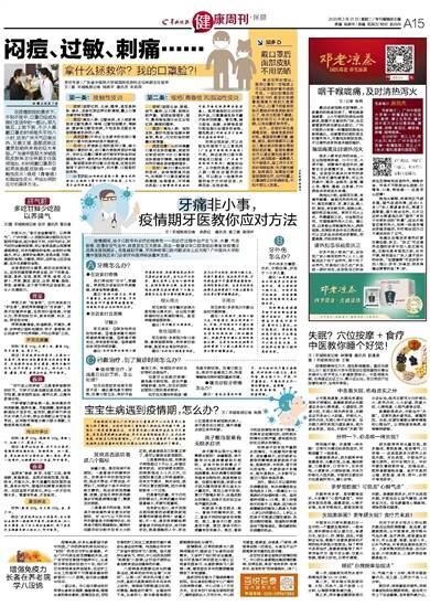 文/羊城晚报记者 余燕红 通讯员 高三德 梁译尹疫情期间,由于口腔专科诊疗的特殊性——在诊疗过程中会产生飞沫、水雾、气溶胶等,弥漫在空气当中,容易发生交叉感染,因此一般建议非口腔急症的患者待疫情过后再去医院就诊。但是碰到牙痛、牙肉肿疼等口腔问题该怎么应对呢?广州医科大学附属中医医院五羊门诊部牙科医师杨詠嘉来支招。