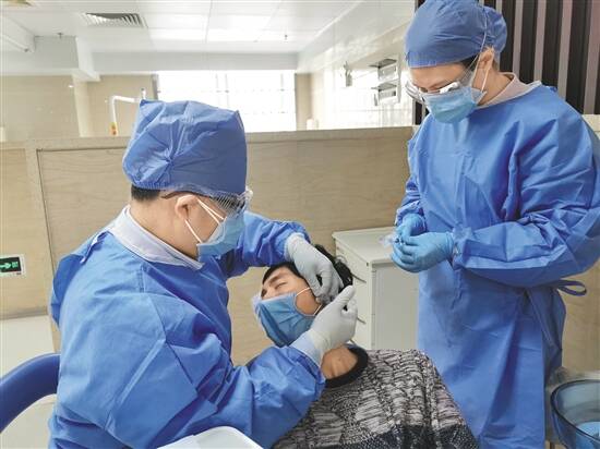 广州医科大学附属口腔医院张清彬副院长给患者治疗颞下关节病