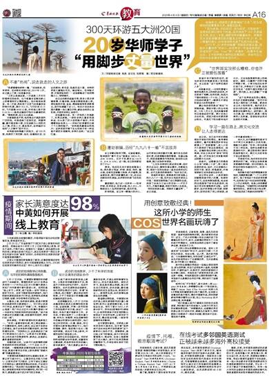 志立用社会学、人类学等知识解释旅途中的人和事,拓展学科学习;在非洲原始部落,他在老师远程指导下研究色彩美学;他每日用手机智能软件记账,运用数学、经济学原理分析花销、控制成本;回校后报了网上西语班,进一步丰富语言能力……