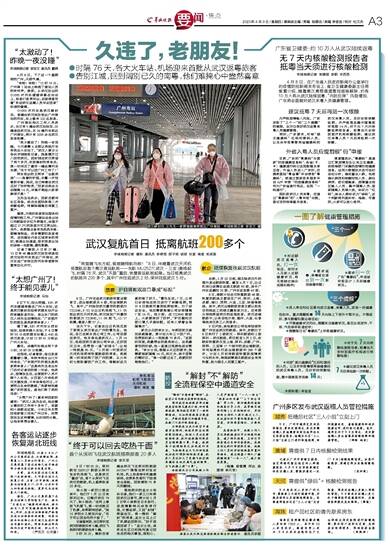 此前,3月29日起,湖北除武汉外的国内客运航班恢复。截至4月7日,白云机场已保障往返湖北航班60班,其中广州往返襄阳20班、广州往返宜昌40班。