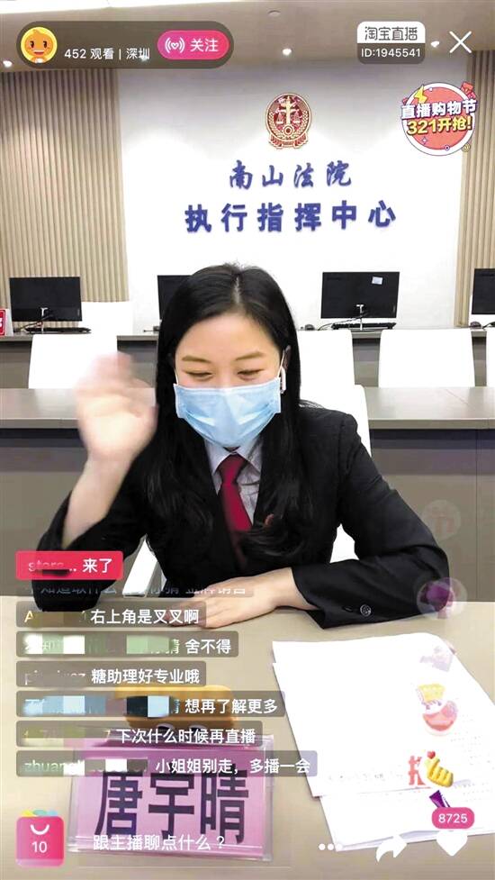 “买它买它买它!”这次的网络主播直播带货有些不同——主角是法官,被“带货”的是深圳南山区一处价值超过千万元的房产。近日,为了使胜诉当事人的权益尽快实现,深圳南山法院法官当了一回司法网拍主播。在主播力推下,曾经流拍的房产最终以高出一拍价格的1764万元成交。这也是南山法院首次尝试对执行房产进行线上直播拍卖。