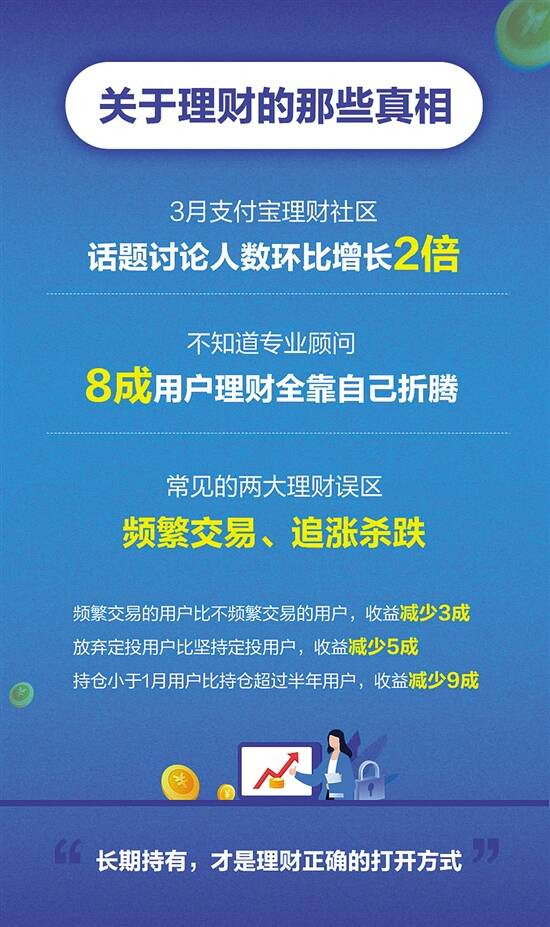 蚂蚁金服提供的数据显示,整个3月,在支付宝理财社区上讨论理财话题的人数环比2月增长了两倍多。用户在社区的提问增长了一倍。去支付宝上了解行情、理财成了很多人“避险”的首选,有网友调侃,支付宝变成了“致富宝”。