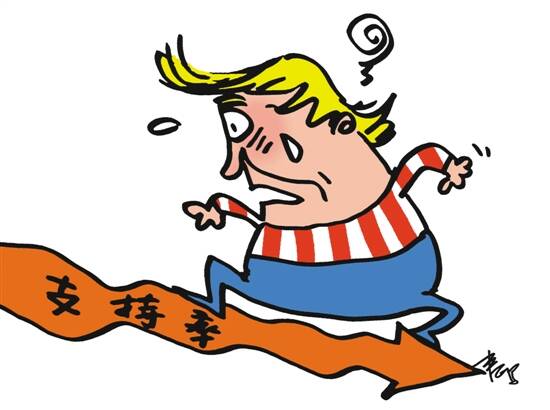 就这小幅度的上升,也很快回落。知名调查公司盖洛普最近的民调显示,认为特朗普工作合格的,回落到45%,而认为他不合格的是54%。