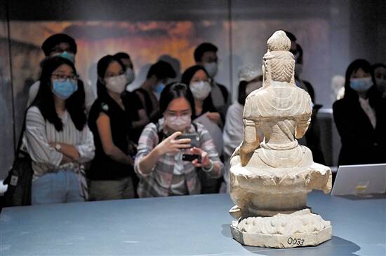 龙门石窟精品文物展在线下举办,市民可免费预约观展 羊城晚报记者 邓勃 实习生 惠天骄 摄