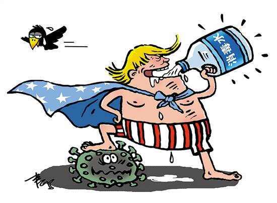 上周四,特朗普在疫情新闻发布会上,即兴提出“想办法把紫外线搞进人体”和“用注射或其他手段将消毒剂注入人体”两种杀病毒的“高招”,经媒体大肆报道,影响巨大:有深信不疑者真的服用消毒剂;卫生官员接二连三劝诫“很危险”;消毒剂生产商也警告“我们的产品不能内服”……