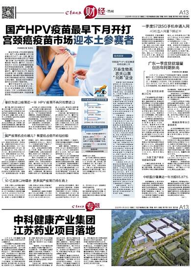 4月16日,中科健康产业集团江苏药业有限公司项目举行开工奠基仪式。中科健康产业集团股份有限公司成立于1984年,主营中药及中药保健食品的研制、生产与销售,是国内自主研发批文数量较多的企业之一。拥有多项国内、国际专利,并有两项为PCT国际发明专利,其销售网络遍布全国几十个城市以及海外多个国家和地区。