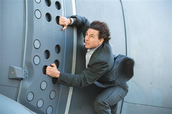 《碟中谍5》中,阿汤哥上演了“扒飞机”,并在没有任何防护的情况下在飞行的飞机外部坚持了90秒。后来他透露,自己的肋骨差点被飞来的小石头砸断。