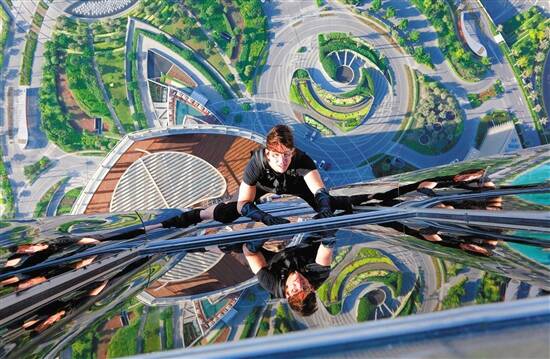 《碟中谍4》里,阿汤哥将自己“蜘蛛人”的爱好发挥到一个新高点。该片最大“名场面”便是阿汤哥徒手攀登迪拜塔,最后他还悠哉游哉地在迪拜塔顶拍了张“到此一游”照。