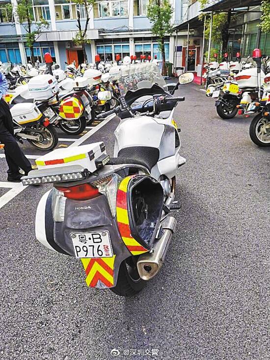 6日晚,深圳交警回应称,经核查:2020年2月28日,罗湖交警大队铁骑队员驾驶粤BP976警用摩托车(型号为本田NT700)在罗湖区爱国路巡逻过程中,摩托车边箱与护栏发生剐蹭,导致右侧边箱卡扣断裂、箱体损坏,无人员受伤。铁骑队员立即向单位报告,并依照程序向车辆保险公司报案。经维修单位深圳市伟达摩托维修服务有限公司到大队对车损进行初步评估,维修报价为17400元。