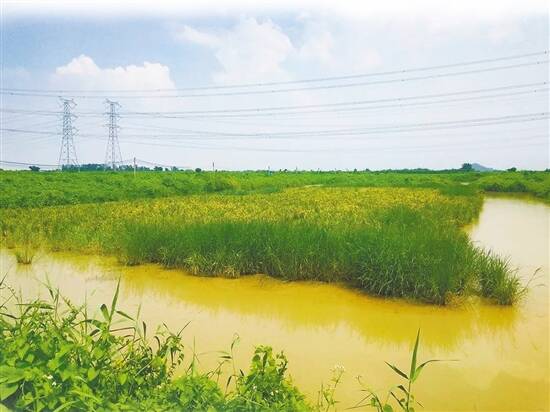 王剑锋介绍,2018年他与另一个青蟹养殖户一起尝试稻蟹共生养殖模式,将水稻种在“蟹围”中间的“蟹岛”上。“事前考察周边的类似项目时,发现这种模式实施有个难题。”他解释说,台山青蟹养殖的环境处于黄茅海和潭江咸淡水交界处,土地含盐量比较高,从千分之八到千分之十不等,养蟹用的水含盐量甚至更高,“普通水稻品种不耐盐,没办法和青蟹一起共生。”