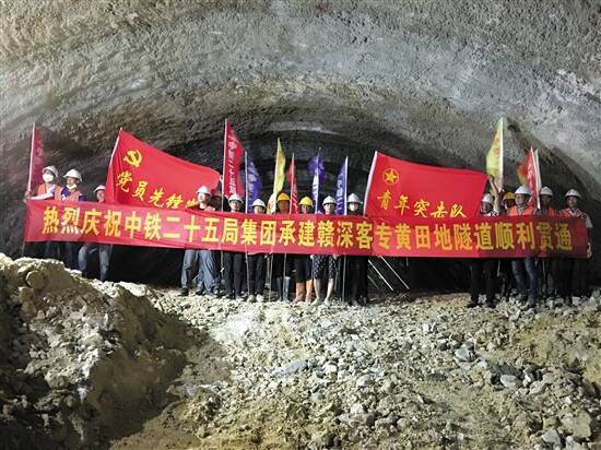 羊城晚报讯 记者李志文,通讯员邓联旭、黄诗伟、欧尧能摄影报道:近日,在大型设备与中铁二十五局作业人员的相互配合下,光束穿透作业面照进隧道内,赣深高铁黄田地隧道宣告顺利贯通。