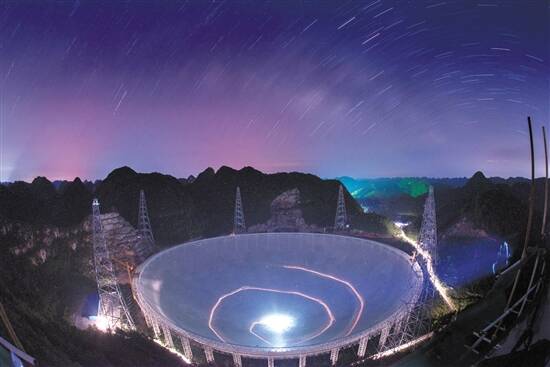 星空下的贵州黔南500米口径球面射电望远镜 新华社记者 刘续 摄