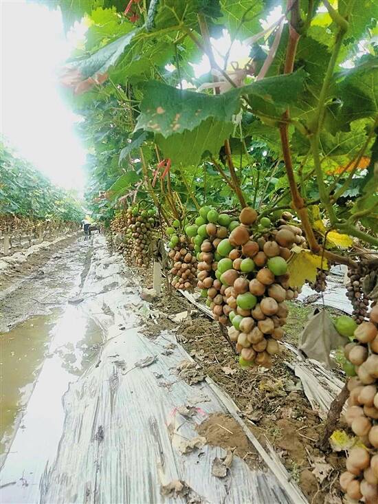 5月30日,记者来到高埗镇葡爽爽生态农业园。此时,葡萄园的水已退去,几名工人正忙修剪坏果,并将其成堆地倒在沟渠边以便处理。记者获悉,该园今年新栽种的名优葡萄几乎全部被水泡坏,损失近二百万元。