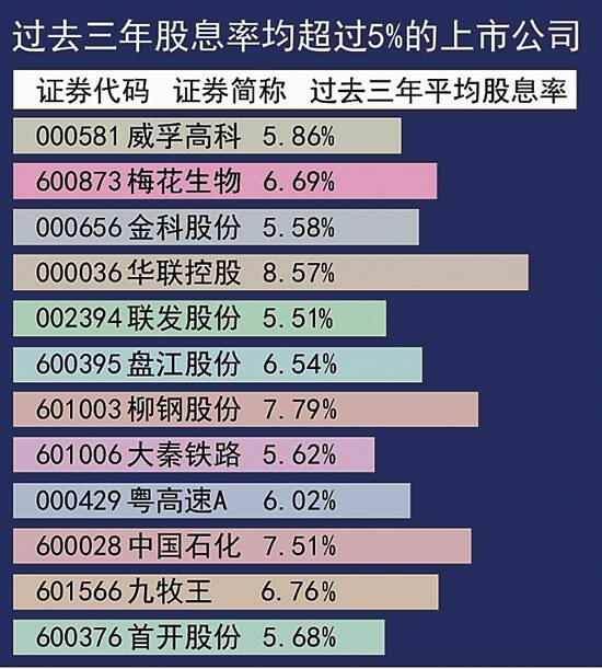 12股连续三年股息率超过5%