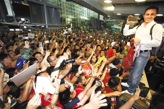 首度执教恒大队离任时,球迷在机场送别卡帅 图/视觉中国