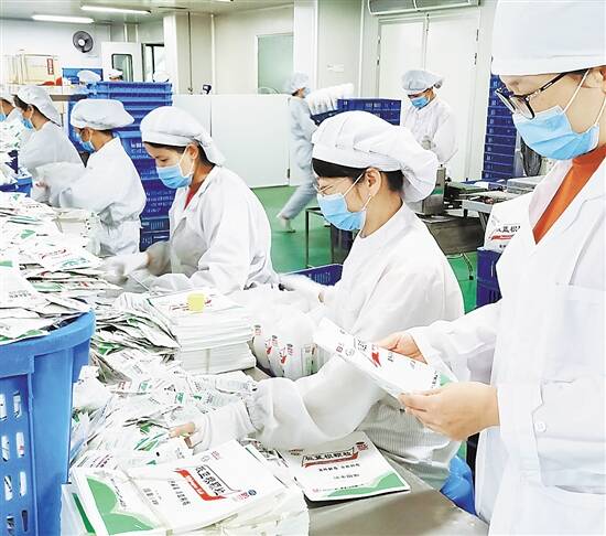 在广州白云山和记黄埔中药有限公司(以下简称白云山和黄中药)的固体外包车间,20余名包装工人正在有条不紊地将生产出来的板蓝根颗粒进行包装、封口。新冠肺炎疫情暴发以来,以板蓝根为代表的经典中成药销量增长明显,作为全国最大的板蓝根生产厂家,早在春节假期,白云山和黄中药就已经开足马力,全力保障抗疫药品的生产和供应。