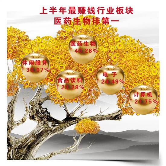 行业板块方面,上半年医药生物无悬念当选年内最赚钱板块,涨幅高达40.28%。排在该板块后四位的依次是休闲服务、电子、食品饮料、计算机,涨幅分别为30.07%、24.49%、23.28%、21.75%。