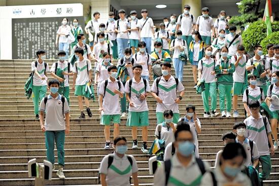 7日下午,广州市南武中学考点的考生陆续走出考场 羊城晚报记者 宋金峪 摄