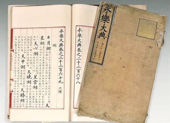 类书《永乐大典》,编纂于明朝永乐年间,由解缙、姚广孝等担任总纂修,历时六年(1403-1408年)编修完成。全书22877卷,分装11095册,共约3.7亿字,汇集了古今图书七八千种。