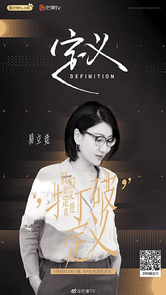 由于综艺节目《乘风破浪的姐姐》(以下简称《浪姐》)的收视与话题持续火爆,其衍生访谈节目《定义》也随之走红。该节目由《立场》节目主持人易立竞担任采访人,自5月8日开播,拟采访15位嘉宾,至今已上线了包括宁静、杜华、王丽坤、伊能静等在内的11期访谈节目。
