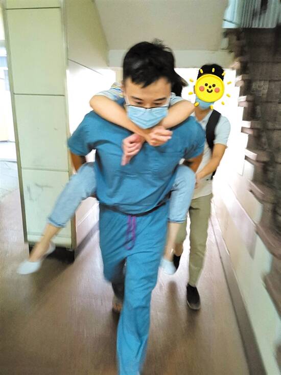 当时正在诊室外陪朋友候诊的林先生目睹了事情的全过程。“诊室门一打开,就看见胡医生抱着患者冲出来,让我帮忙去叫护士。”林先生回忆道,护士立刻和林先生一起协助胡医生转运患者。但当他们赶到电梯间时,却发现电梯已经下去了。“时间紧迫!我决定从楼梯跑下去,不能浪费一秒钟。”胡医生抱着秦女士从4楼跑到1楼,大概只用了1分钟。