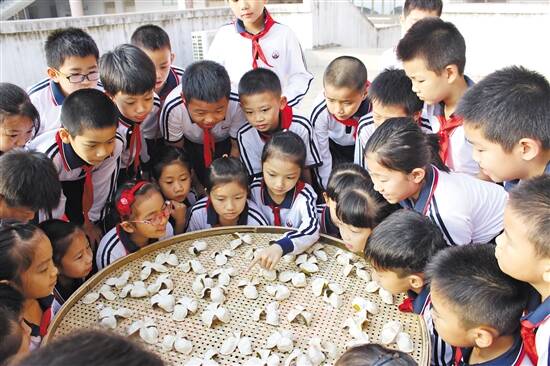 “拣果考眼力,二三刀开皮。翻皮看门路,晒皮趁天气。贮皮需有道,伺理比心机”,说的便是陈皮的制作流程。从果皮到陈皮,起码需要三年耐心地制作,2017年,已有一定中医药文化教学基础的南洲小学首次在四年级开启“制陈皮”课程,以校内“百草园”种植基地、“百草堂”操作基地和“百草园晒场”晾晒基地为活动地,通过每周一节的校本课程和综合实践课,让学生亲手制作陈皮。